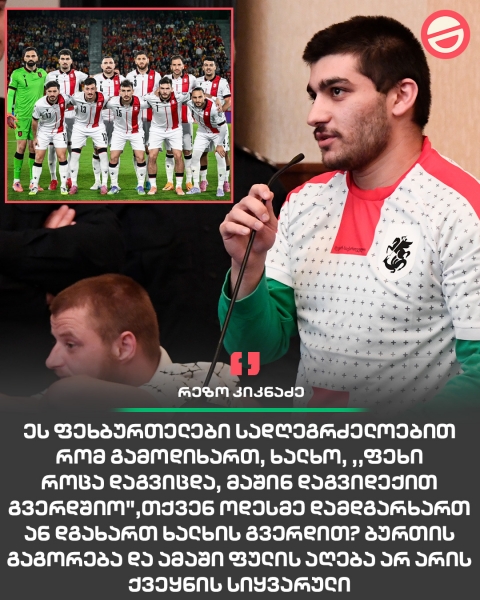 "ეს ფეხბურთელები სადღეგრძელოებით რომ გამოდიხართ, ხალხო, ,,ფეხი როცა დაგვიცდა, მაშინ დაგვიდექით გვერდშიო",თქვენ ოდესმე დამდგარხართ ან დგახართ ხალხის გვერდით?